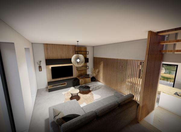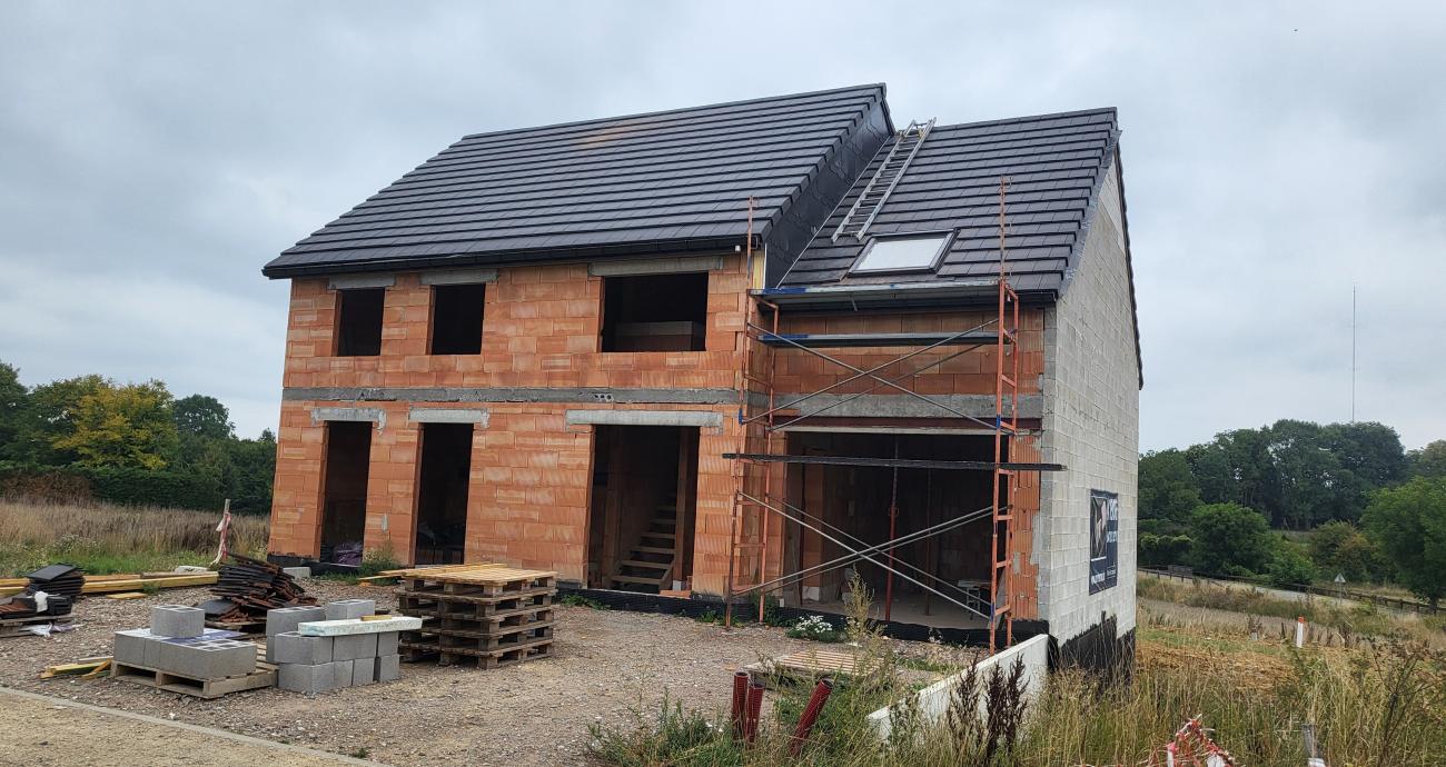 Le TERRAIN + la CONSTRUCTION en CLE SUR PORTE (hors cuisine) = 406.003,44 € hors frais et TVA. ............................................. Convient pour profession libérale. ..................... Surface au sol : 106,82 m² en demi-niveau. Surface totale : 261,55 m².......... Avec caves de 49 m², aménageables en bureaux avec un accès privatif par l'extérieur et aussi avec un accès via l'intérieur de la maison. ......................................................................................................................... Plans et documents (pdf) en bas de page....................................................................................................................................................................................................................................................... >>>>> Les postes de parachèvements sont : Ventilation Mécanique Contrôlée de Type C+ ---> PLOMBERIE : comprend les tuyauteries d'adduction d'eau chaude et froide et leur évacution. ---> CHAUFFAGE : pompe à châleur VAILLANT avec chauffage sol au RDC ---> INSTALLATION ELECTRIQUE : complète et agréée. ---> CHAPES ISOLANTES projetées au sol et CHAPES béton. ---> PLAFONNAGE + isolant toiture. ---> CARRELAGE et PARQUET : faites votre choix dans de vastes gammmes. ---> SANITAIRES : il existe un très grand choix adaptés à votre budget. ---> ESCALIERS : escaliers en hêtre. ---> PORTES INTERIEURES : tubulaires, vaste choix de finition. ---> PANNEAUX PHOTOVOLTAÏQUES : 7.200 Wc.