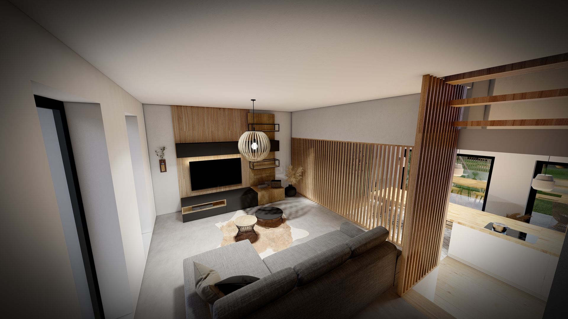 niveau - 0,90 : sàm + cuisine (32,50 m²), buanderie (9,19 m²).