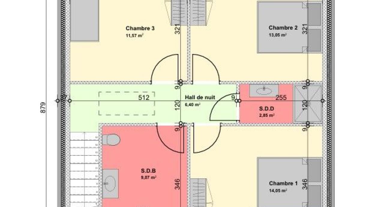 Etage : hall nuit, 3 chambres, salle de bains, salle de douches.
